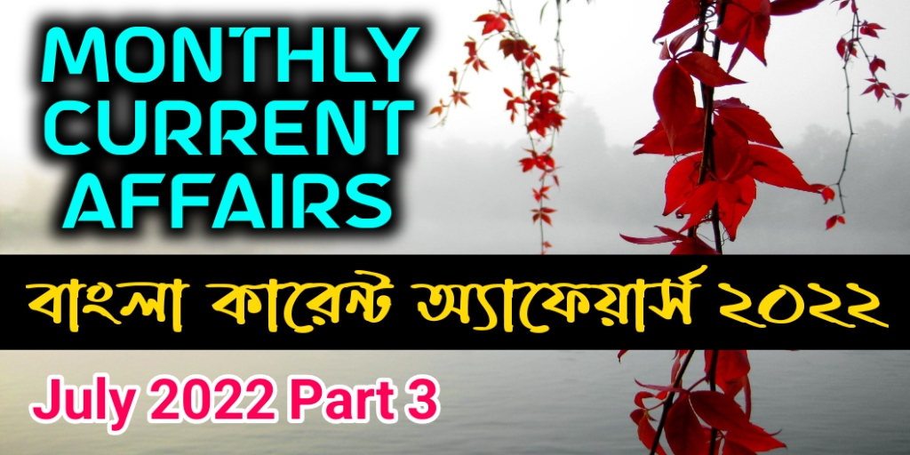 Monthly Current Affairs in Bengali - বিভিন্ন সাম্প্রতিক সরকারি চাকরির পরীক্ষায় ভাল ফলাফল পেতে গুরুত্বপূর্ণ ভূমিকা পালন করে। GA বিভাগে বেশিরভাগ নম্বর পেতে হলে কারেন্ট অ্যাফেয়ার্স বিষয়টিতে ভালোভাবে প্রস্তুতি নিতে হবে। এই পেজে আমরা Monthly Current Affairs in Bengali - July 2022 Part 3 - বাংলা কারেন্ট অ্যাফেয়ার্স ২০২২ এর কিছু গুরুত্বপূর্ণ Current Affairs শেয়ার করেছি।